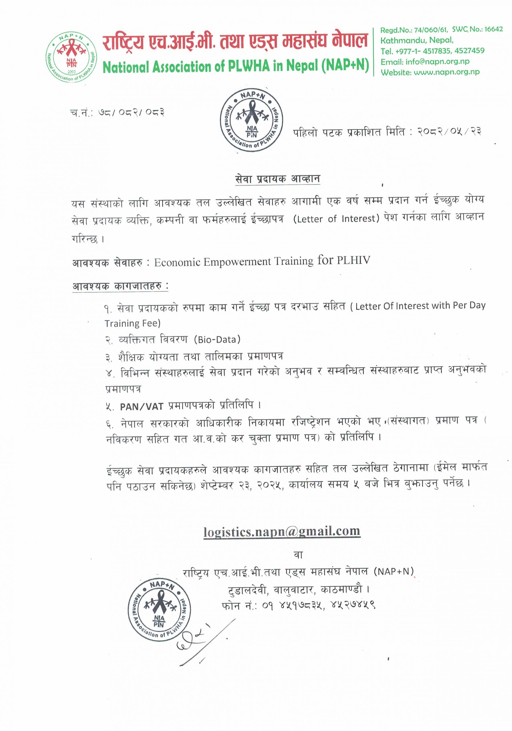 Call for vendor listing notice to conduct Economic Empowerment Training for PLHIV.